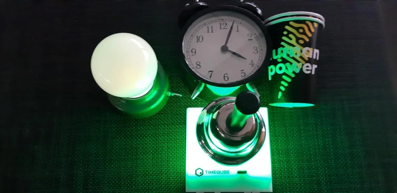 Hartelijk dank Chantal voor de originele TIMEQUBE die we bij Human Power Now gaan inzetten voor gepersonaliseerde coaching/training en eenieder kan zien aan de wisselende kleur van de “cube” hoeveel tijd nog beschikbaar is tijdens de bijeenkomst zonder steeds de tijd te raadplegen.