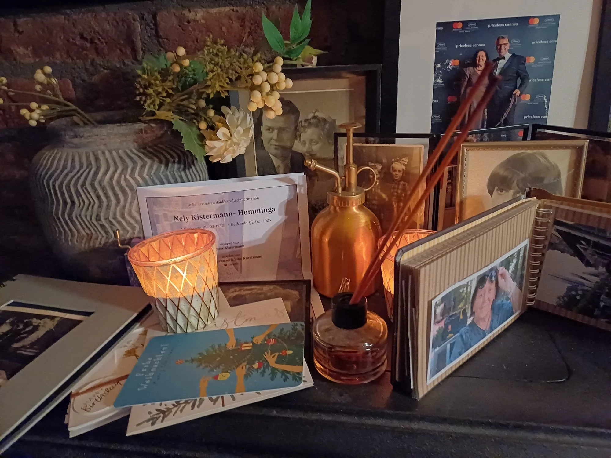 Tevens sliep ik weer in de woonkamer zoals vorig jaar bij jou. Op je sterfdag 2 februari stond ik weer op en ging ik nu zonder Gentle een wandeling maken en op de koffie bij Nicole die een jaar terug me deze dag zo fijn ondersteunde en dat ook nog altijd doet als ik even een luisterend ook nodig heb. Ik ga in de middag weer lesgeven en in de avond toast ik op jou zoals gebruikelijk.